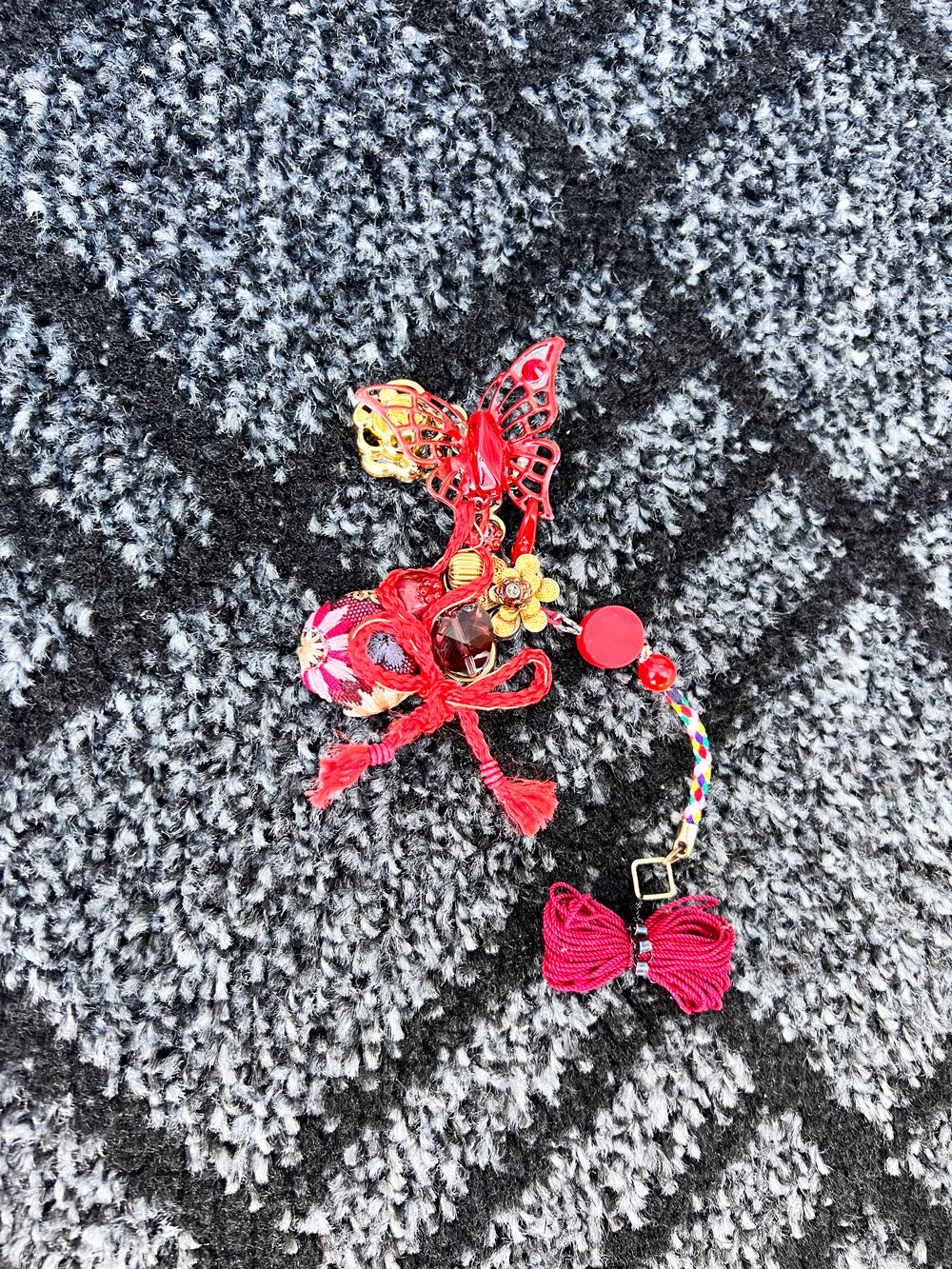 華やかな赤い蝶をモチーフにした、耳元を彩る浄化装置です。
